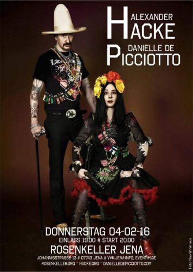 Geschrieben am 29. Januar 2016. Veröffentlicht in K2-Kategorie Veranstaltungen. ALEXANDER HACKE & DANIELLE DE PICCIOTTO - 04. Februar 2016 Rosenkeller Jena weiter Infos ... Aufrufe: 239 Zurück Weiter
