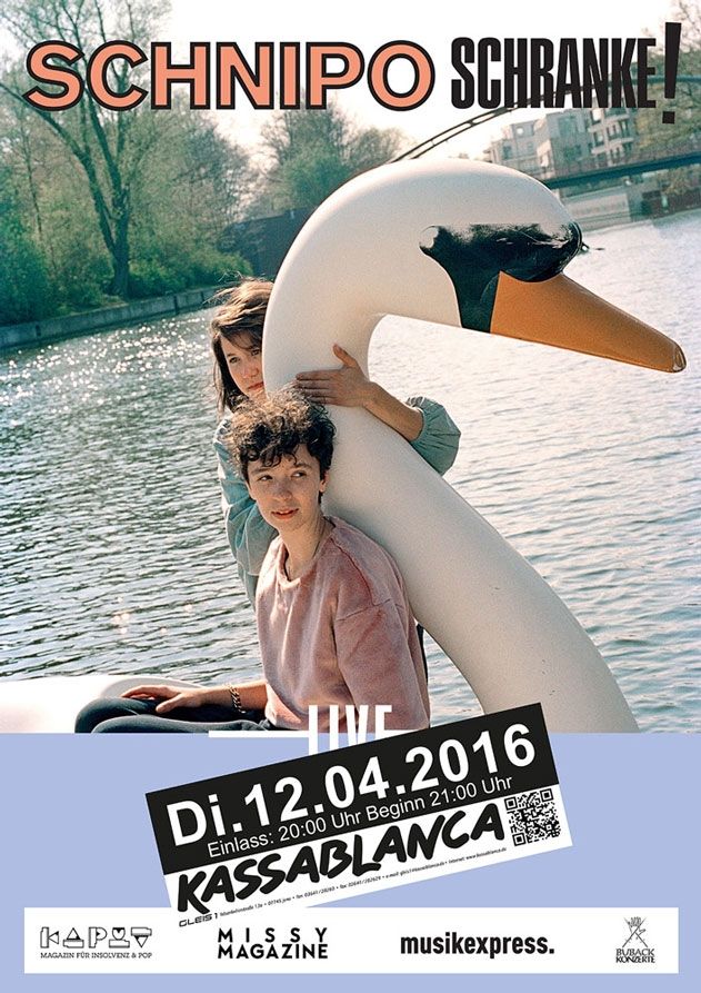 Geschrieben am 29. Januar 2016. Veröffentlicht in K2-Kategorie Veranstaltungen. LIVE: Schnipo Schranke - 12. April 2016 Kassablanca Jena weitere Infos ... Aufrufe: 373 Zurück Weiter
