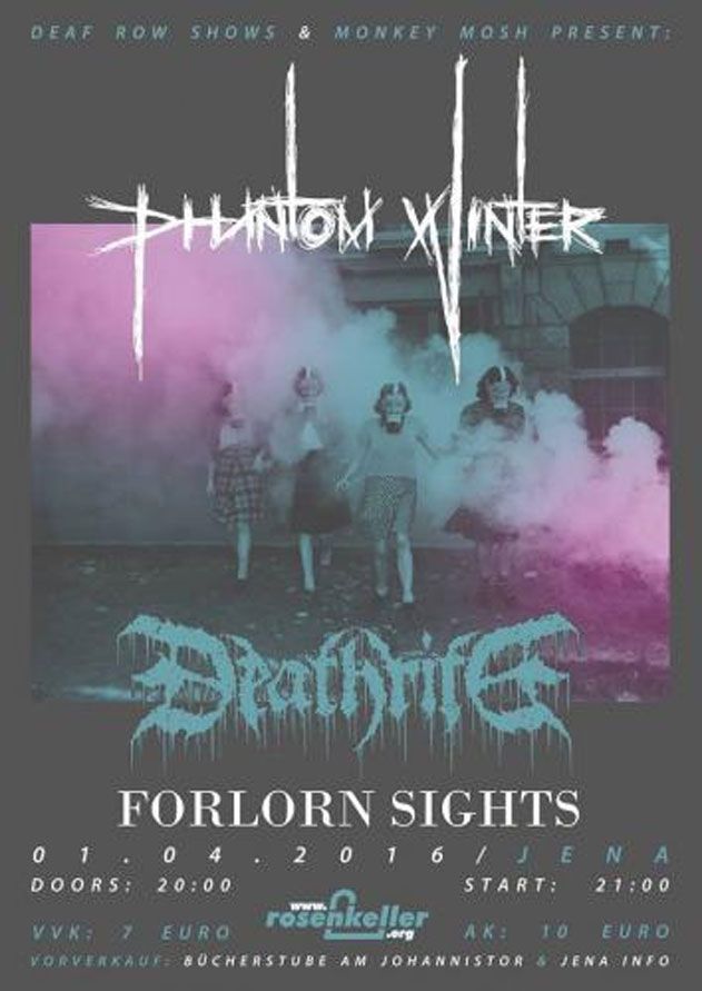 Geschrieben am 29. Januar 2016. Veröffentlicht in K2-Kategorie Veranstaltungen. PHANTOM WINTER - 01. April 2016 Rosenkeller Jena weitere Infos ... Aufrufe: 257 Zurück Weiter