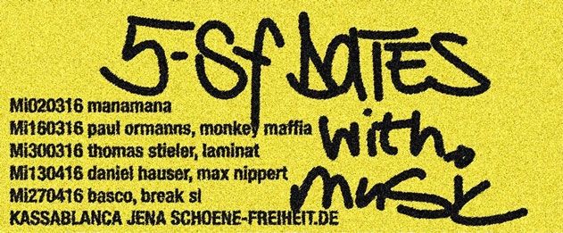 Geschrieben am 29. Januar 2016. Veröffentlicht in K2-Kategorie Veranstaltungen. Schöne Freiheit - 13. April 2016 Kassablanca Jena weitere Infos ... Aufrufe: 601 Zurück Weiter