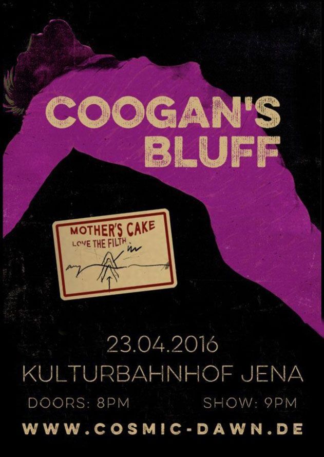 Geschrieben am 29. Januar 2016. Veröffentlicht in K2-Kategorie Veranstaltungen. Coogan's Bluff + Mother's Cake - 23. April 2016 Kulturbahnhof Jena weitere Infos ... Aufrufe: 265 Zurück Weiter