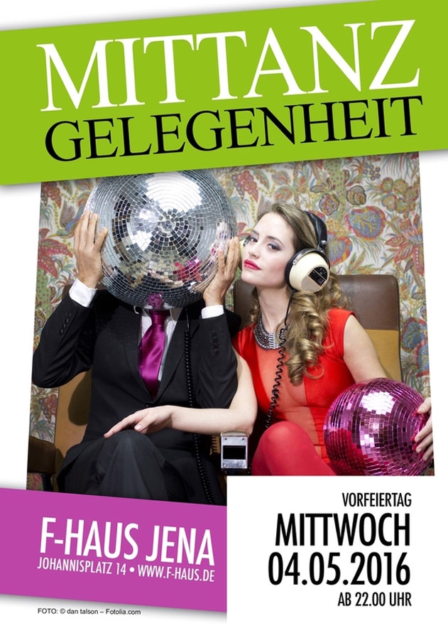 Geschrieben am 29. Januar 2016. Veröffentlicht in K2-Kategorie Veranstaltungen. Mittanzgelegenheit - 04. Mai 2016 F-Haus weitere Infos ... Aufrufe: 288 Zurück Weiter