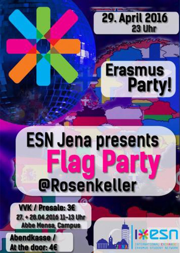 Geschrieben am 29. Januar 2016. Veröffentlicht in K2-Kategorie Veranstaltungen. ESN SEMESTERANFANGSPARTY -29. April Rosenkeller Jena weitere Infos ... Aufrufe: 306 Zurück Weiter