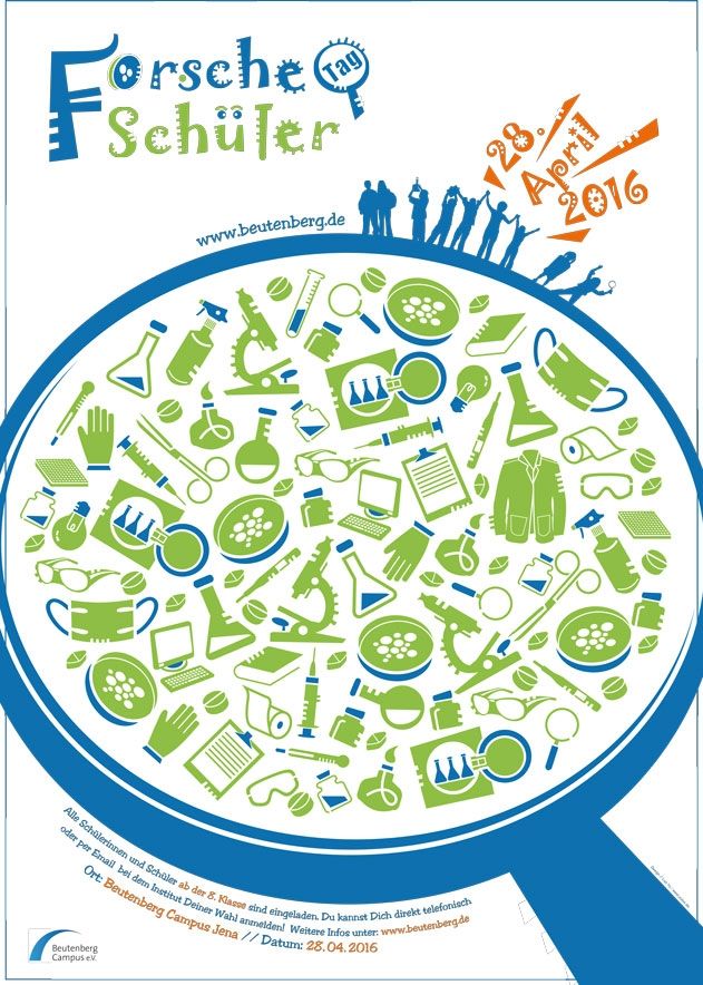 Geschrieben am 29. Januar 2016. Veröffentlicht in K2-Kategorie Veranstaltungen. FORSCHE SCHÜLER-Tag - 28. April 2016 Beutenberg Campus jena weitere Infos ... Aufrufe: 340 Zurück Weiter