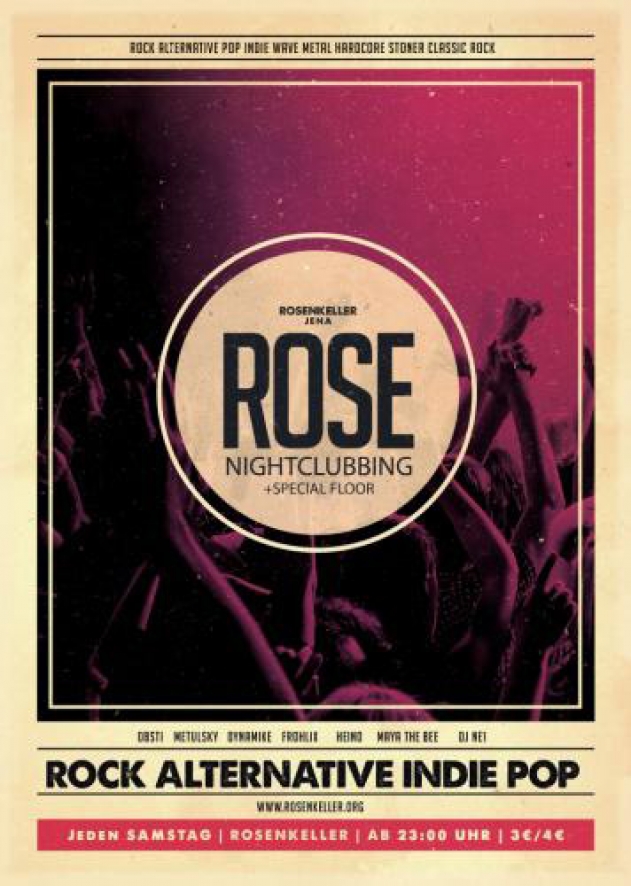 Geschrieben am 29. Januar 2016. Veröffentlicht in K2-Kategorie Veranstaltungen. NIGHTCLUBBING ROSE GEBURTSTAGSPARTY - 04. Mai 2016 Rosenkeller Jena weitere Infos ... Aufrufe: 363 Zurück Weiter