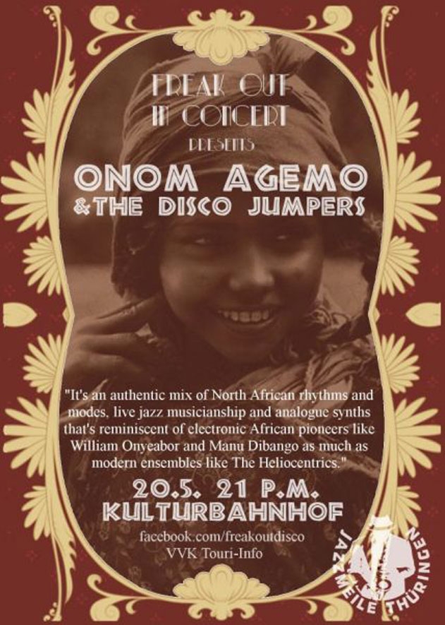 Geschrieben am 29. Januar 2016. Veröffentlicht in K2-Kategorie Veranstaltungen. Onom Agemo & The Disco Jumpers - 20. Mai 2016 Kulturbahnhof Jena weitere Infos ... Aufrufe: 378 Zurück Weiter