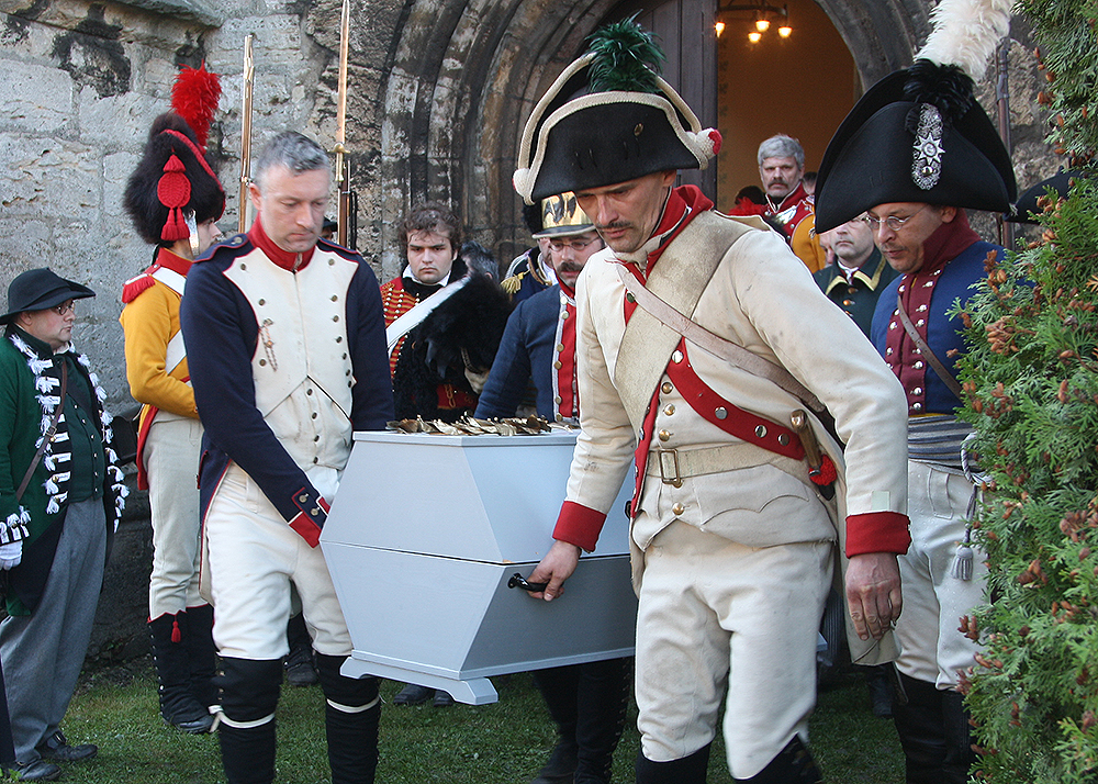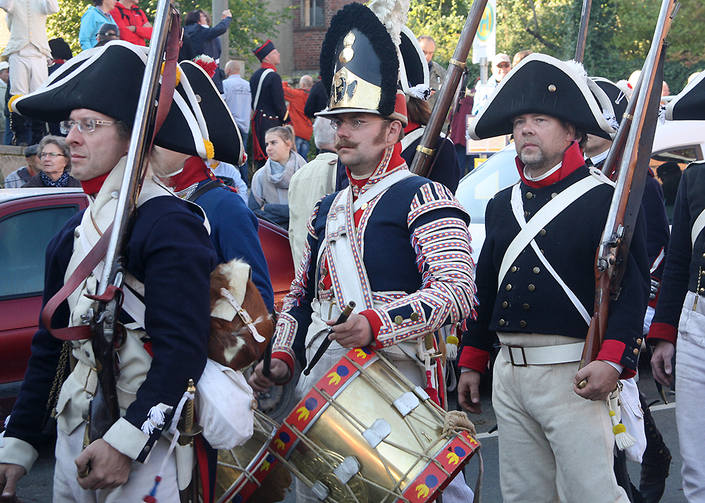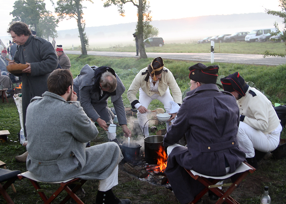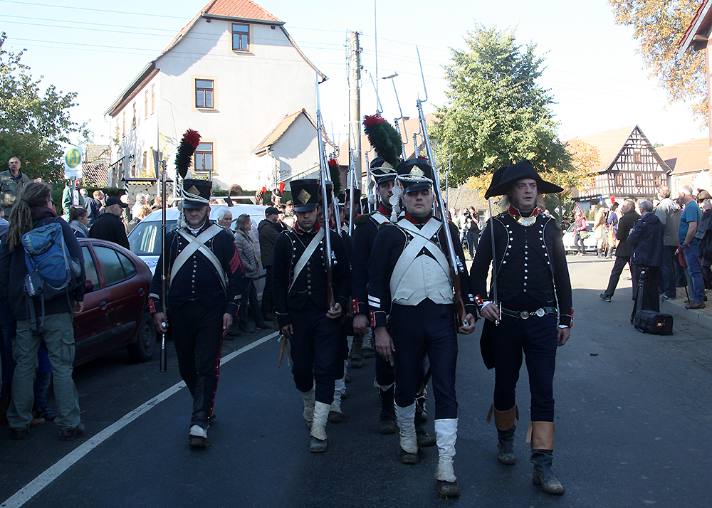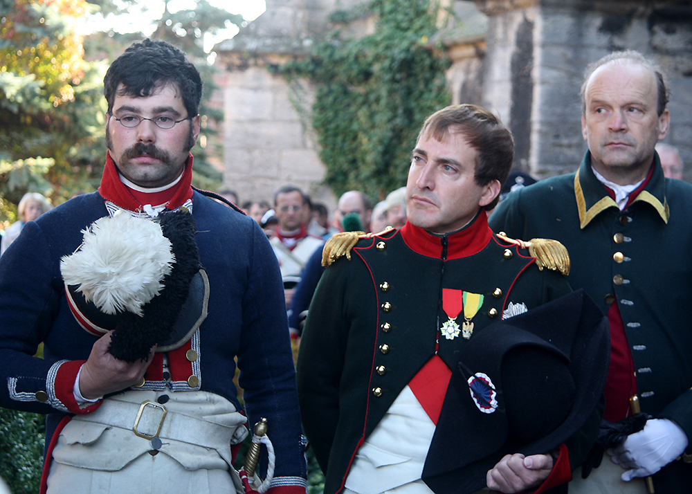 Zum 210. Jahrestag der Schlacht bei Jena und Auerstedt waren 1.000 Militärtraditionspfleger aus 12 Staaten, darunter der US-Amerikaner Mark Schneider in seiner Rolle als Napoleon Bonaparte I, angereist. Am Samstagnachmittag hatten sie vor 10.000 Schaulustigen in einer zweistündigen, aufwändigen Inszenierung den überlegenen Sieg der Franzosen über die Preußen und Sachsen am jedem 14. Oktober 1806 nachgestellt. Dieser blutige Tag forderte über 30.000 soldatische und zivile Opfer.