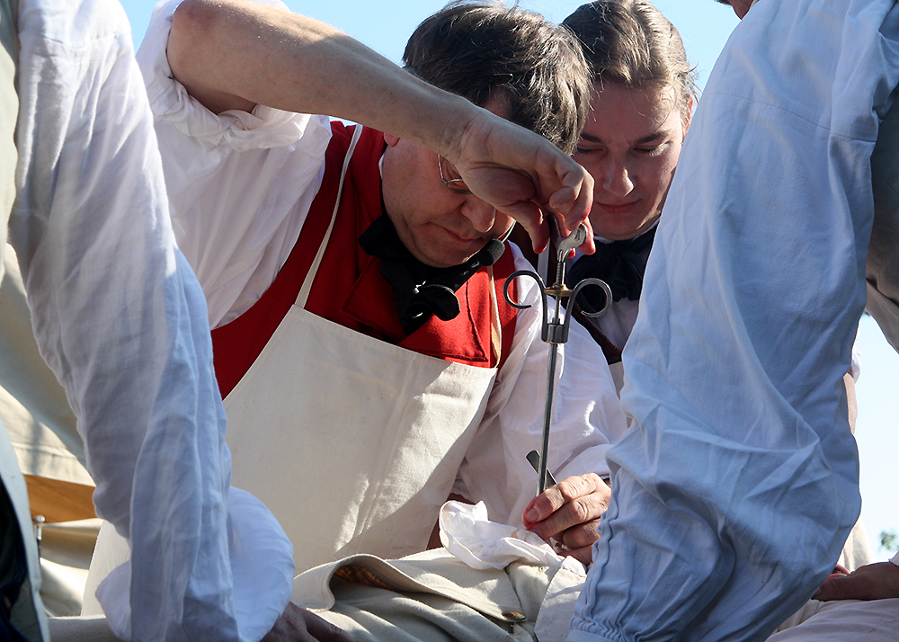 Im Anschluss an die ehrende Zeremonie demonstrierte im Biwak der Chirurg, wie die Feldscher anno 1806 die Verwundeten medizinisch versorgten.