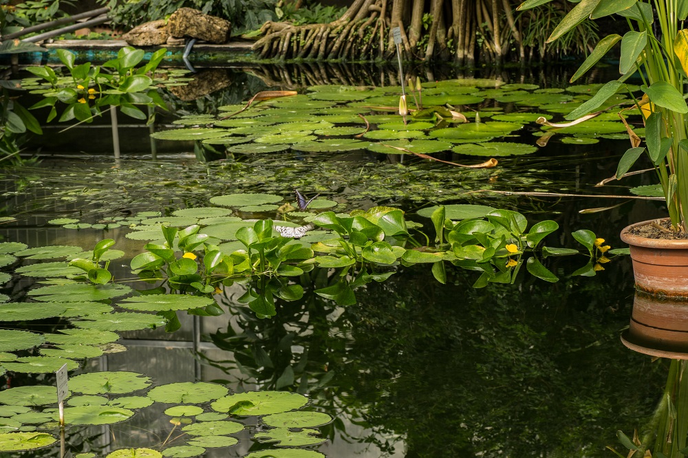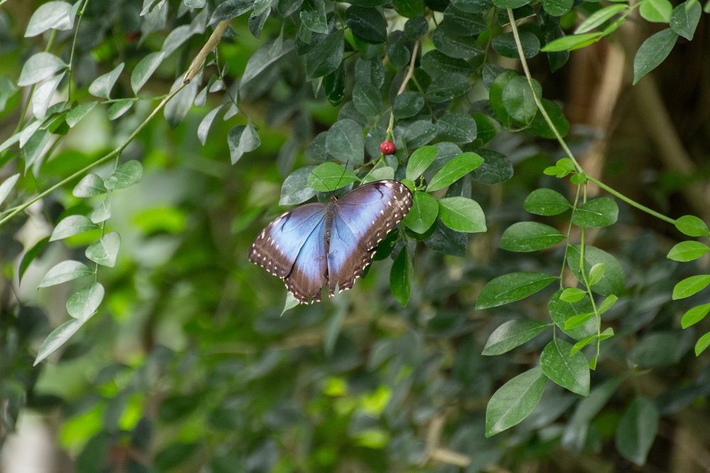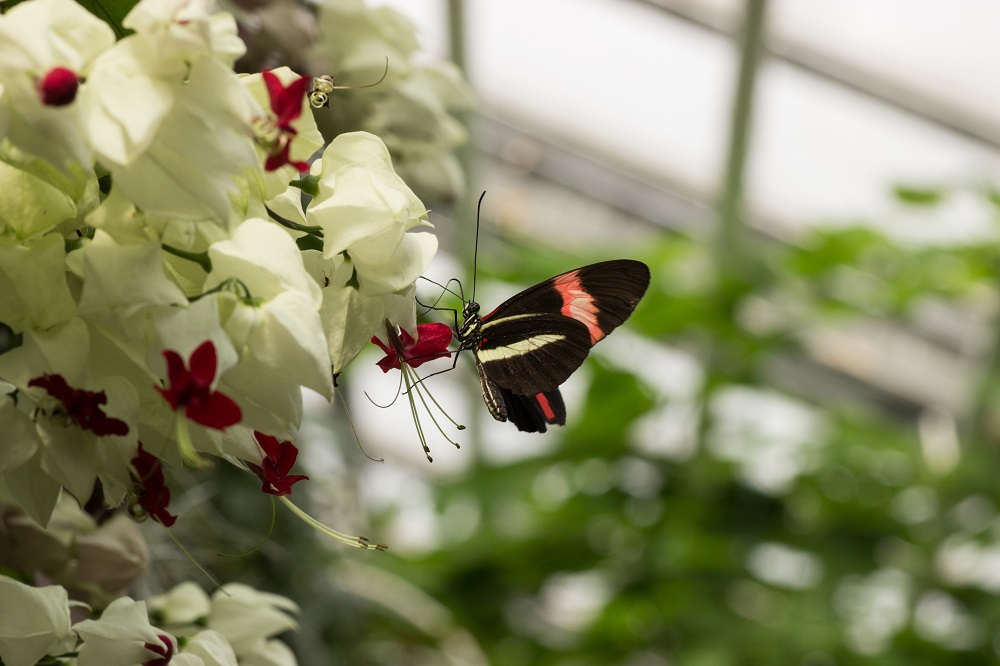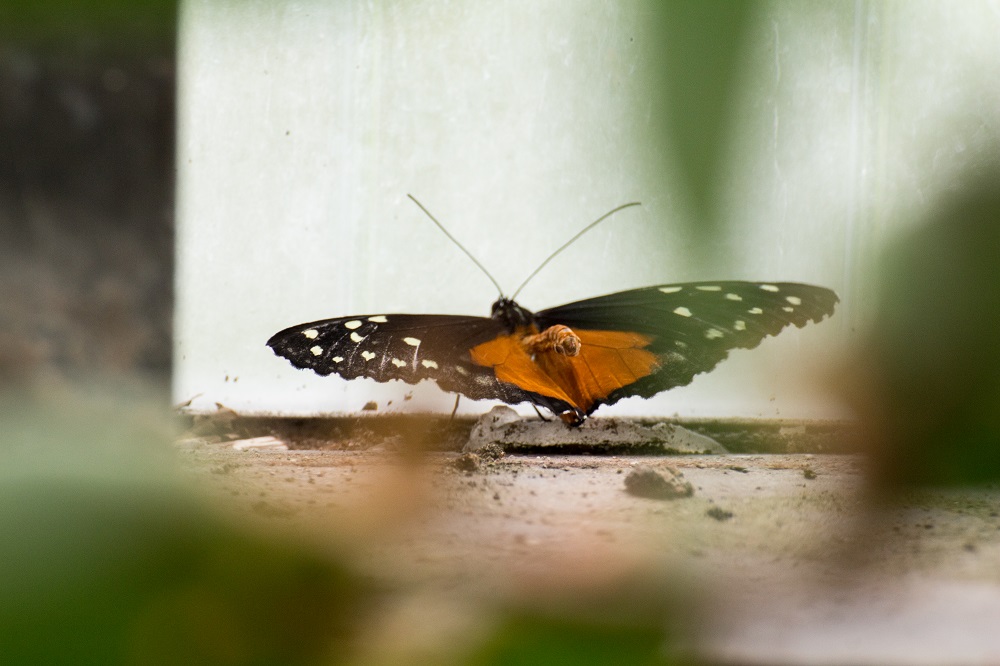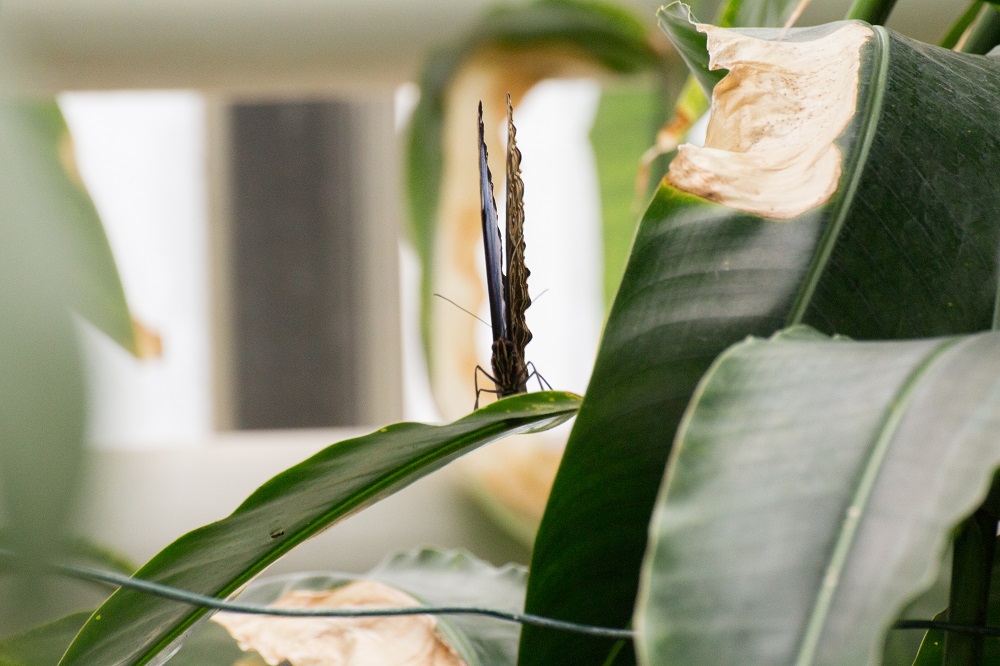 Die Arten wechseln stetig, es lohnt sich also, öfters vorbeizuschauen und eine Kamera mitzunehmen. Denn, mit etwas Glück, lassen sich die Schmetterlinge auch auf den Besuchern oder naheliegenden Pflanzen nieder, sodass man die prächtigen Insekten gut fotografieren kann.