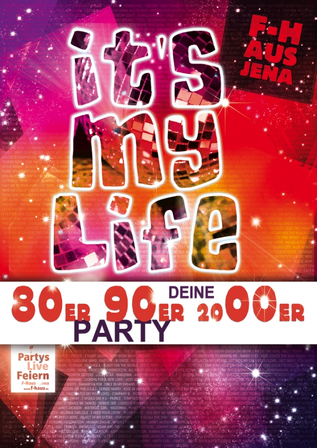 Geschrieben am 24. Juli 2017. Veröffentlicht in K2-Kategorie Veranstaltungen. IT’S MY LIFE DEINE 80er/90er/2000er PARTY - 15.02.2020 F-Haus Jena weitere Infos..... Aufrufe: 517 Zurück Weiter
