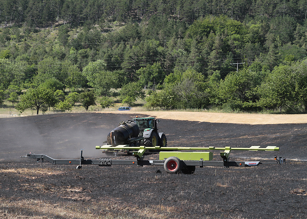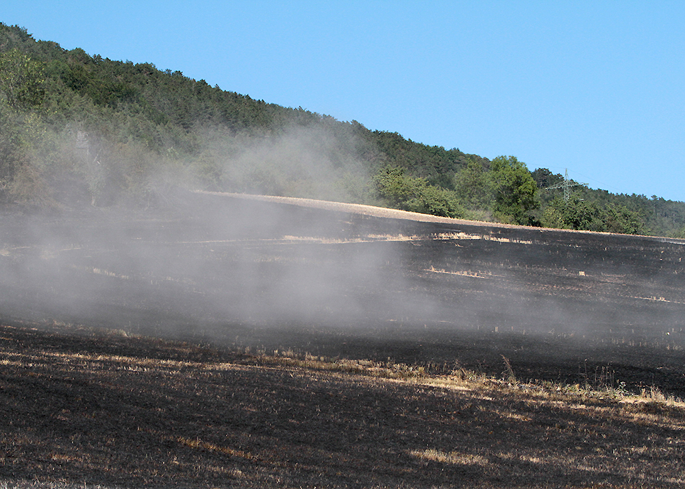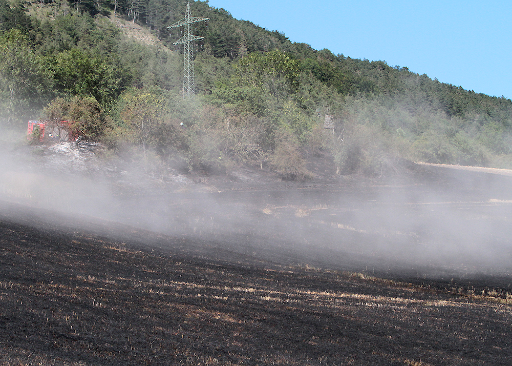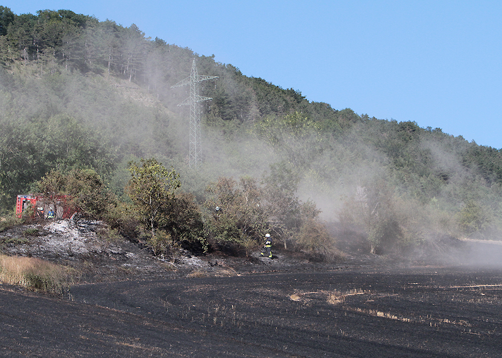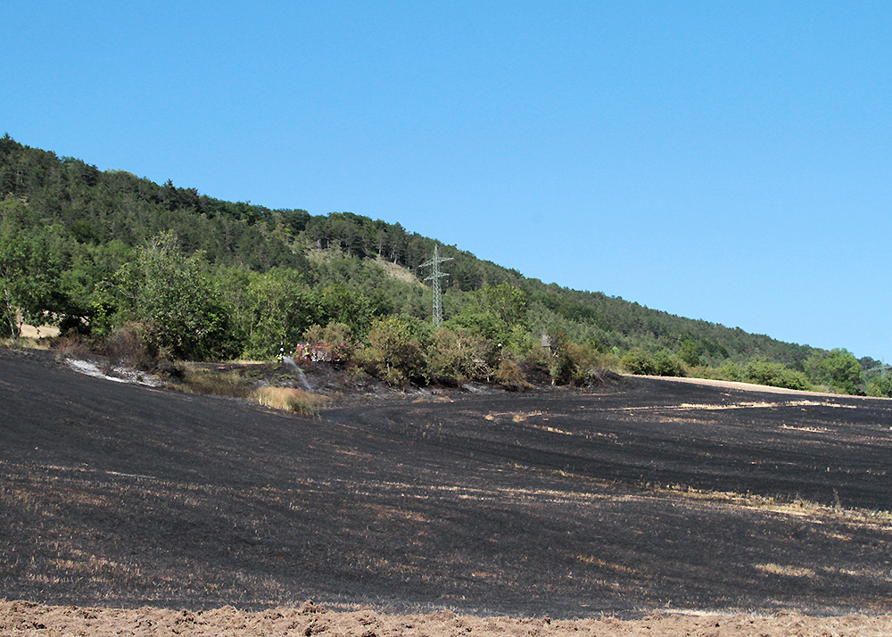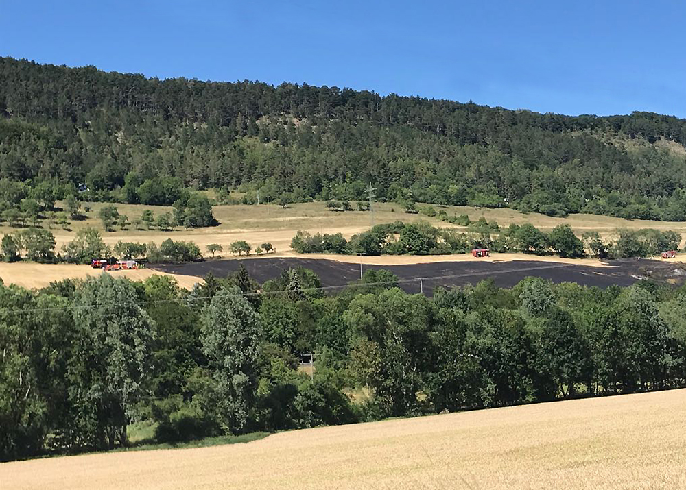 Beim Eintreffen der insgesamt 25 Einsatzkräfte standen 3 Hektar Wiese und 1 Hektar abgeerntetes Feld in Brand.