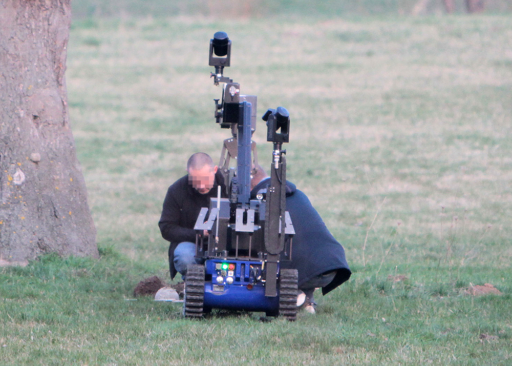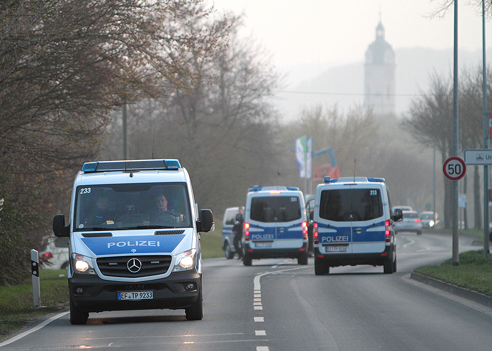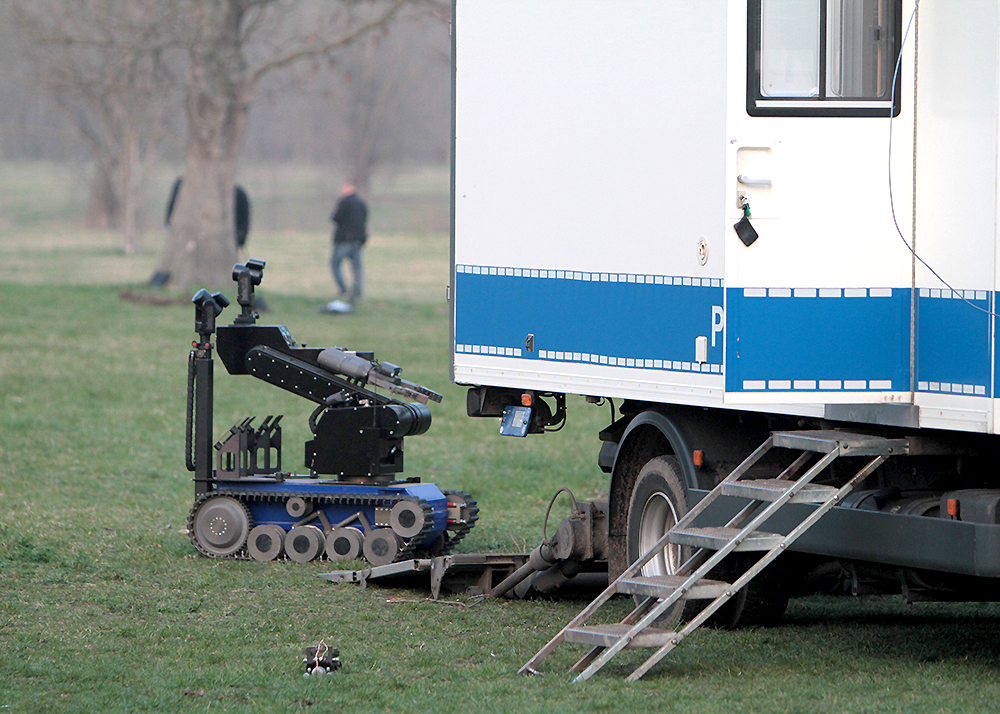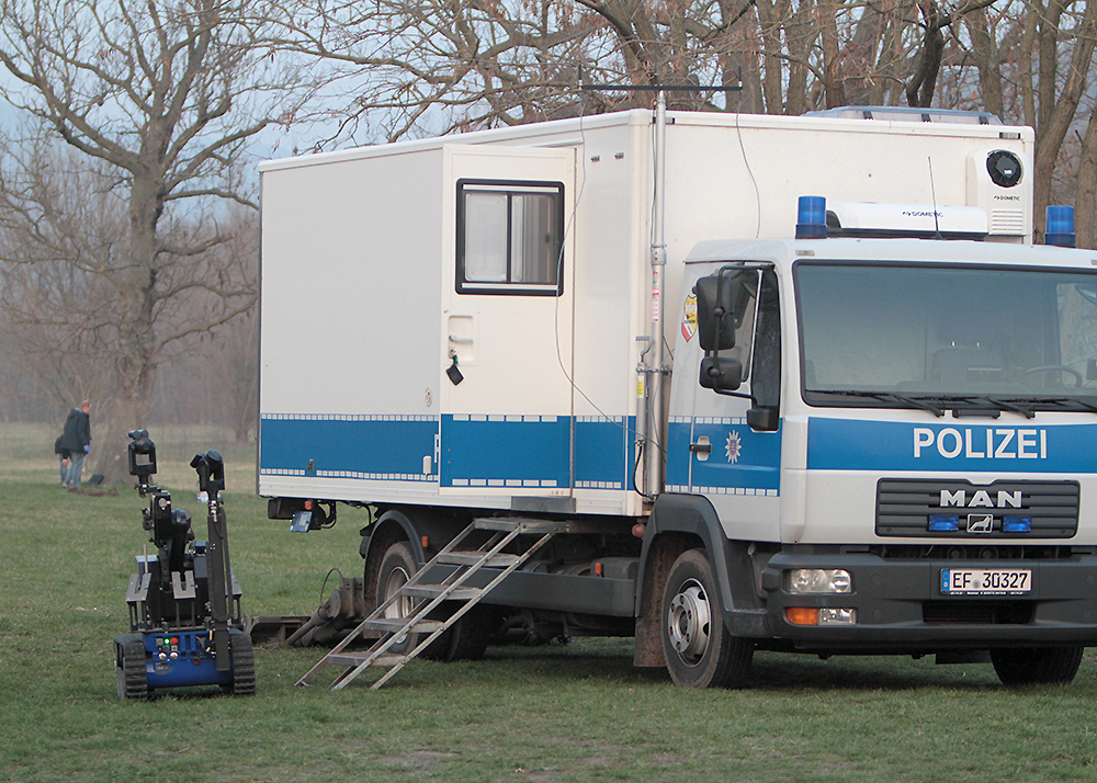 Ein vermeintlicher Bombenfund auf der „Hundewiese“ in Jena-Nord hat sich nicht bestätigt. Nach zweifacher Sprengung konnte Entwarnung gegeben werden. Fotos: Michael Baumgarten