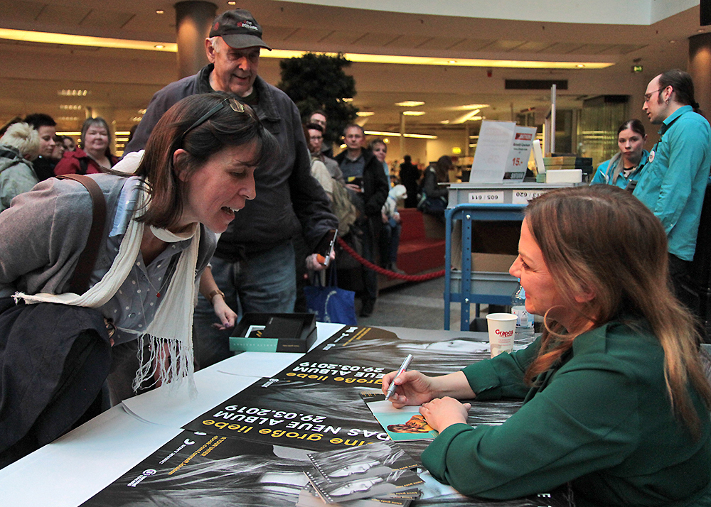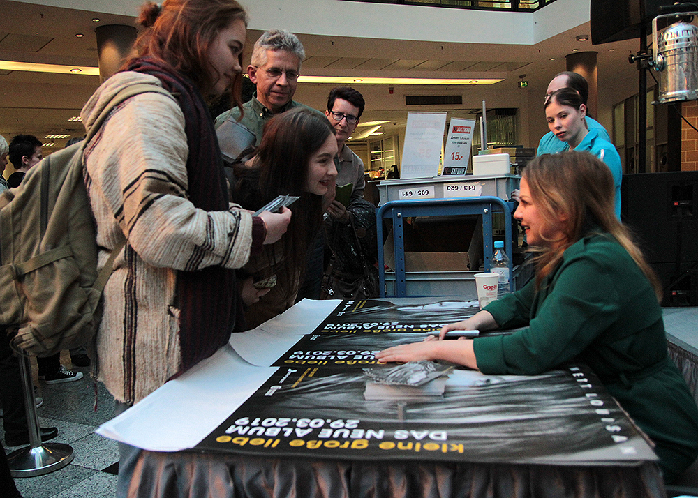 Die in der deutschen Pop- und Chanson-Szene bekannte Sängerin Annett Louisan stellte am Montagabend im Jenaer Einkaufscenter Goethe Galerie ihr neues Album „Kleine große Liebe“ vor. Die Ausnahmekünstlerin sang mit ihrer feinen Stimme über Liebe und das Leben. Im Anschluss gab es Autogrammfotos oder das eine oder andere Selfie. Fotos: Jana Baumgarten/Steffen Langbein