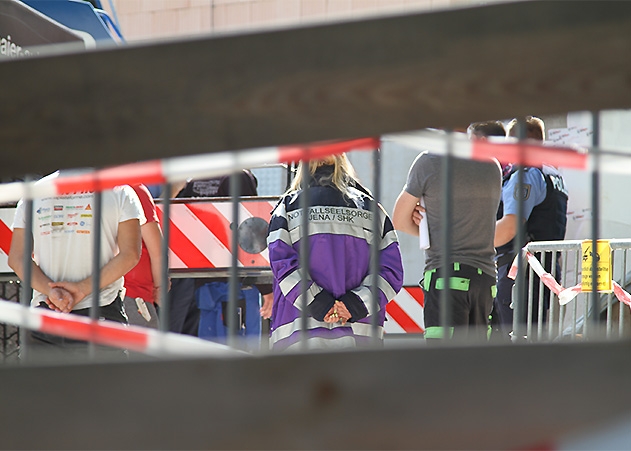 Bei einem Arbeitsunfall in Jena sind am Dienstag zwei Männer schwer verletzt worden. Sie stürzten von einem Dach und fielen in vier Meter tief einen Fahrstuhlschacht. Fotos: Ben Baumgarten