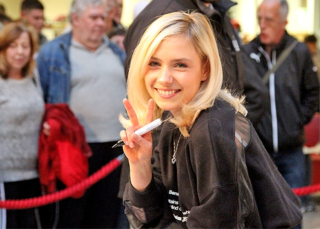 Im Anschluss an ihren Kurzauftritt gab die 18-Jährige fleißig Autogramme und stellte sich für Fotos zur Verfügung. Fotos: JN/Baumgarten