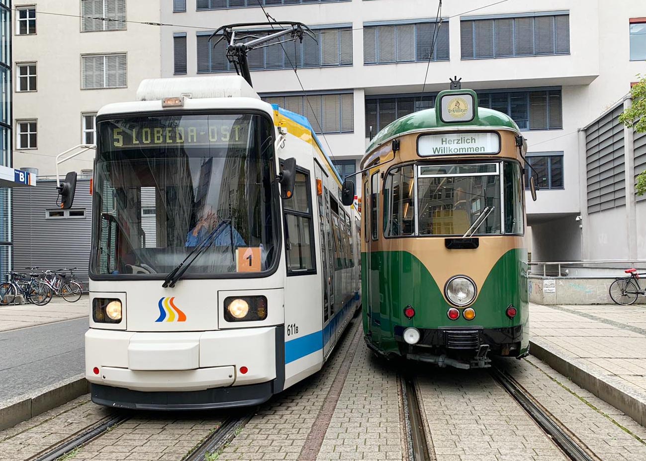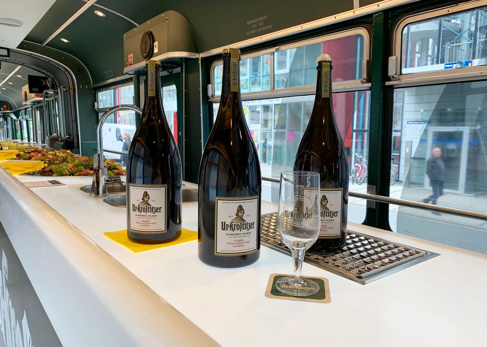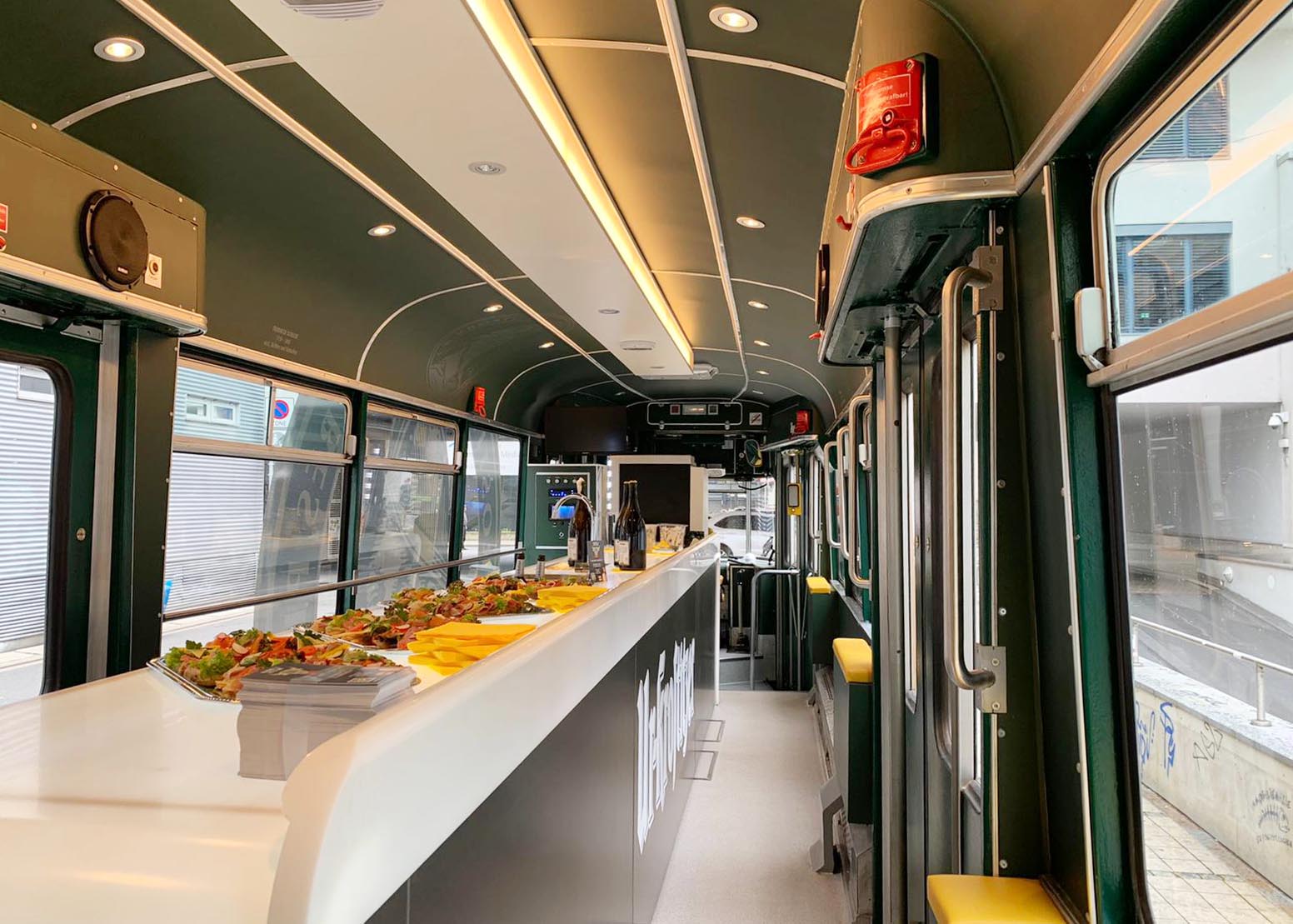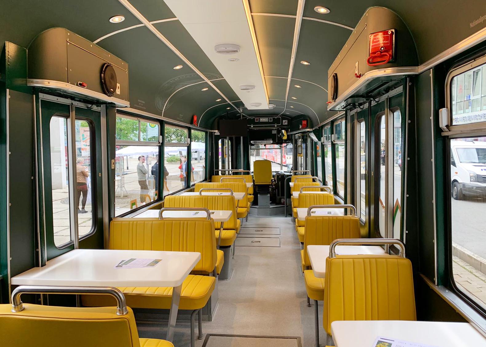 Partybahn im neuen Outfit: Jenas einzige mobile Eventlocation rollt seit heute wieder durch Jena. Sechs Meter langer Tresen bildet beleuchtetes Herzstück. Fotos: Kim Baumgarten/JN