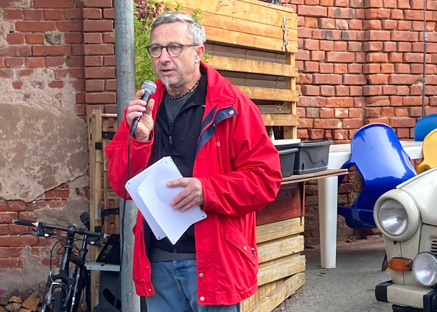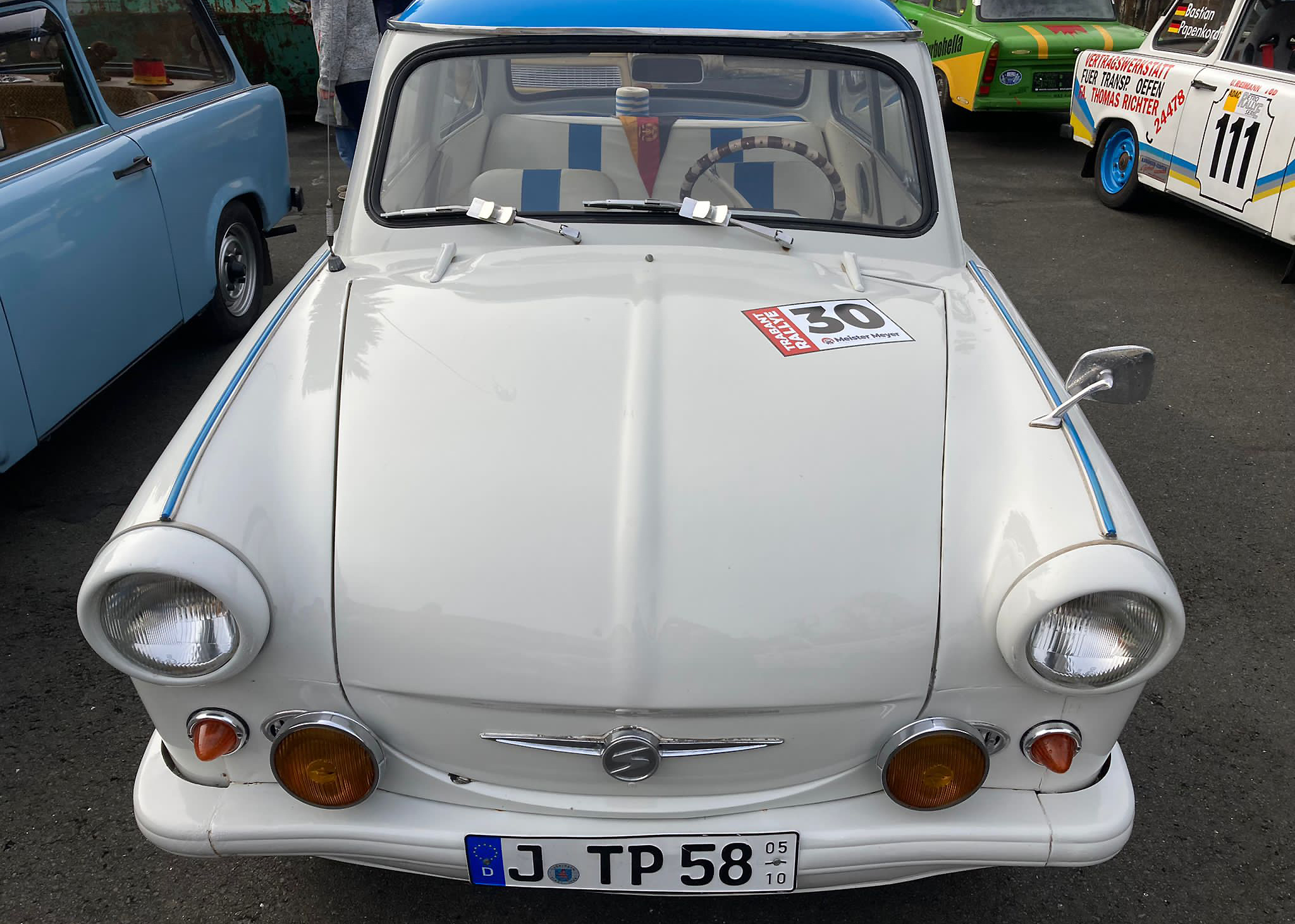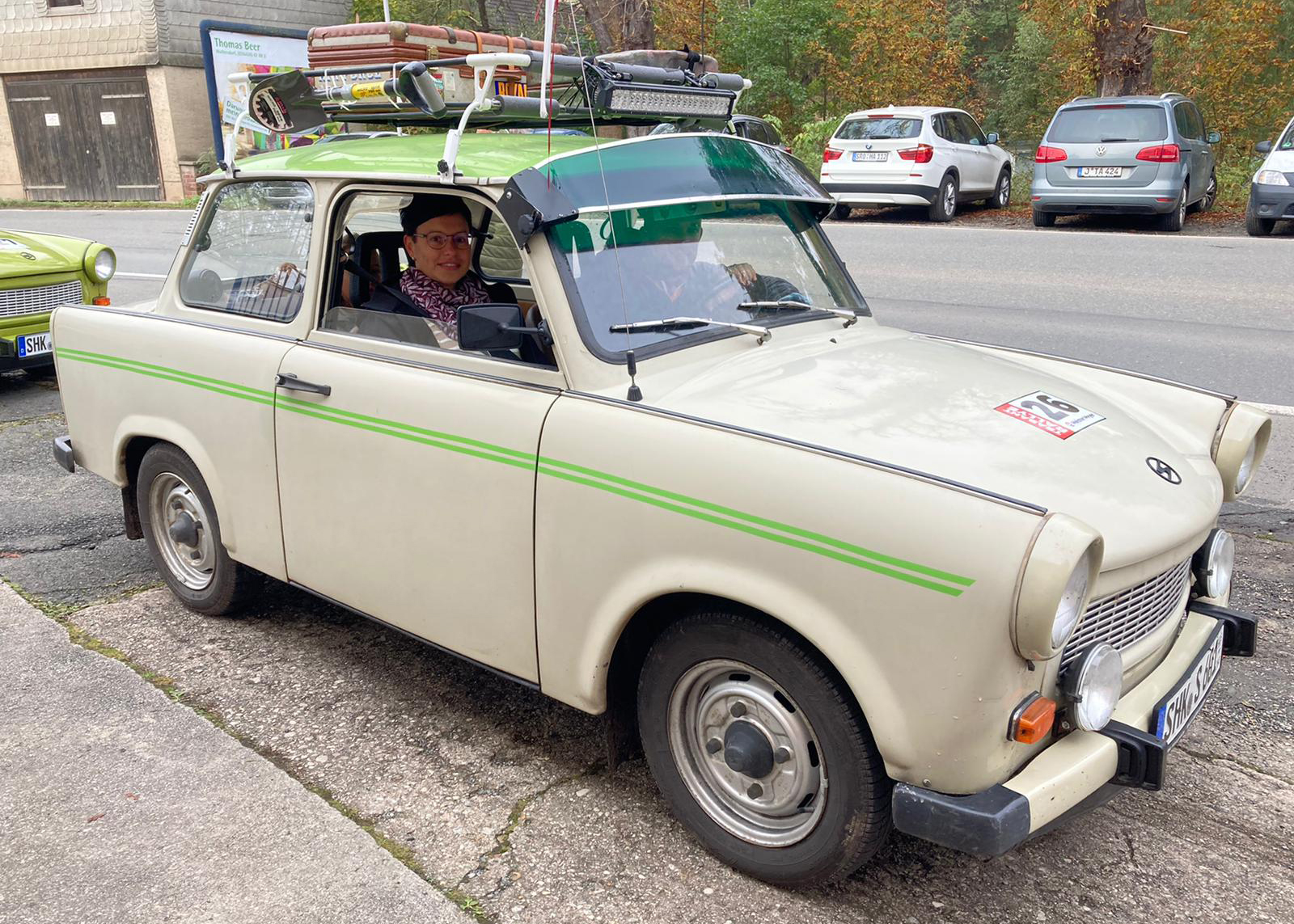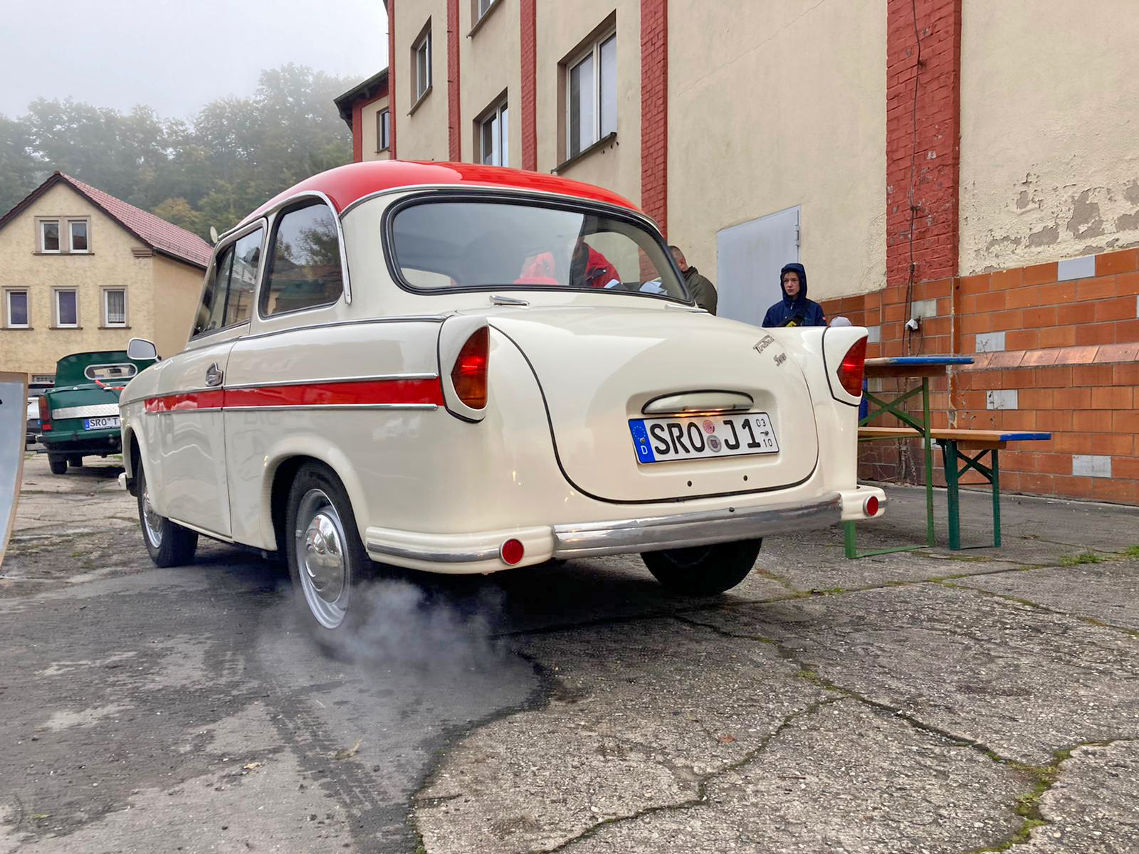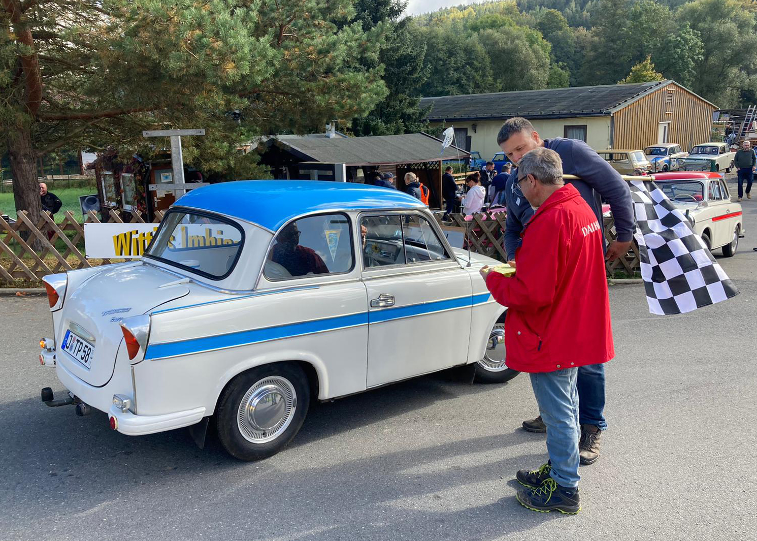 Dieter Meyer, Betreiber einer Trabi-Werkstatt und Vermietung, hatte Freunde um das DDR-Kult-Auto eingeladen, um auf einer Wertungsstrecke von 100 Kilometern, die eine oder andere Prüfung abzulegen.