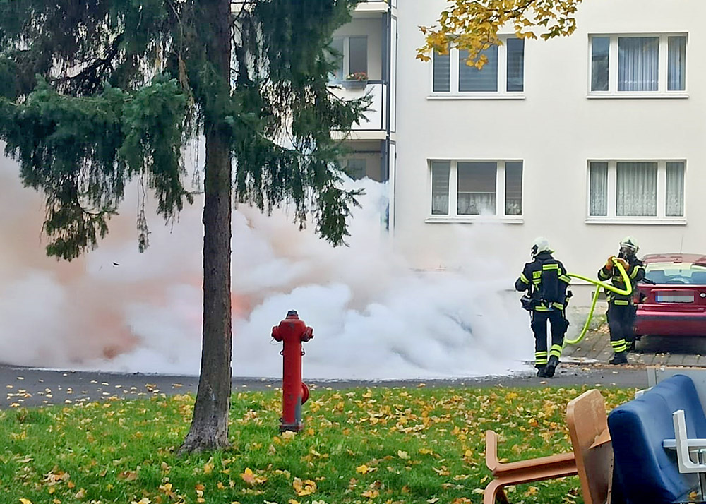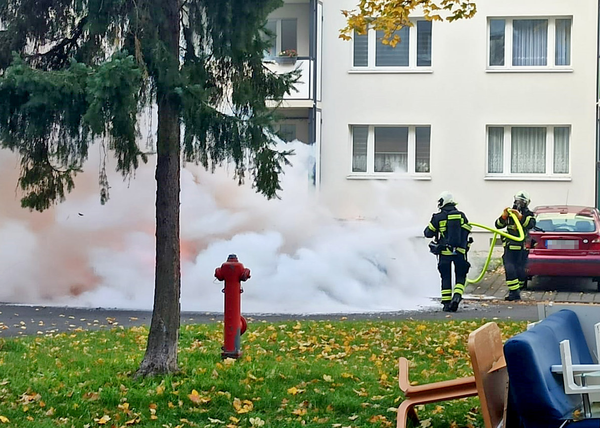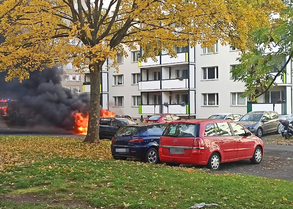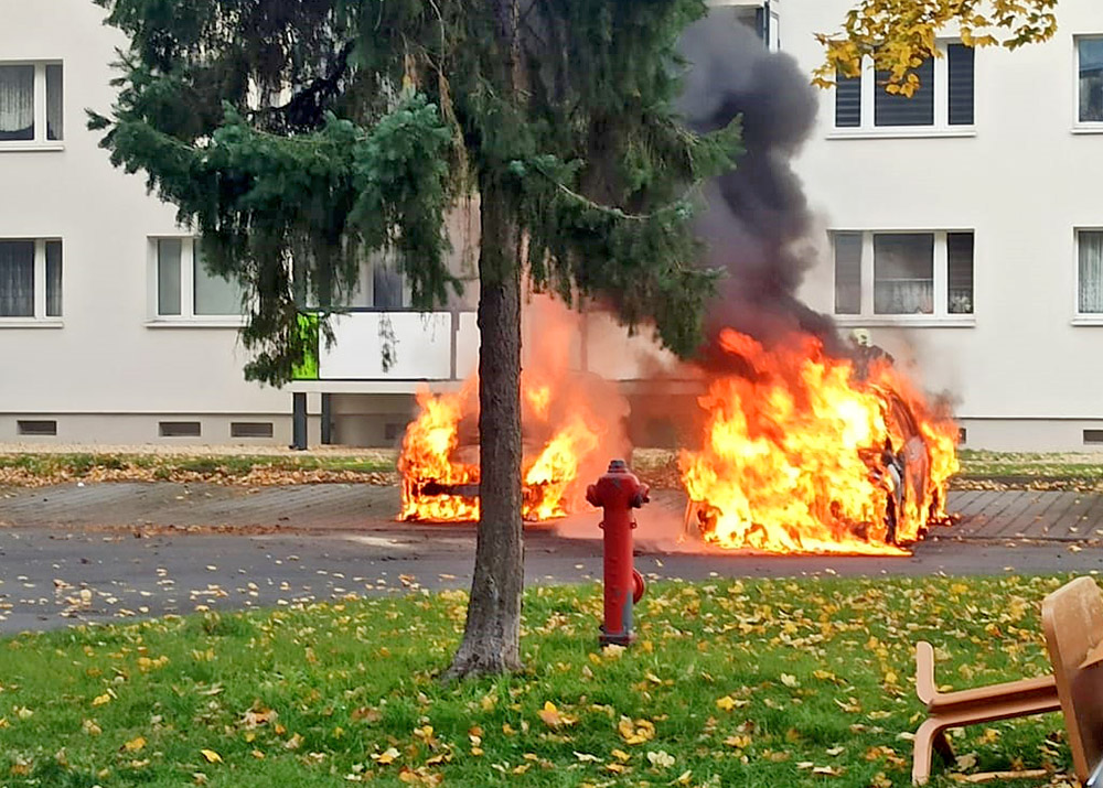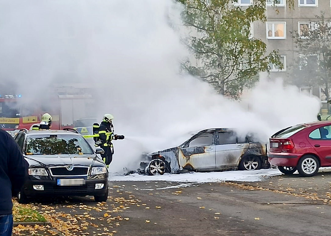 Nach dem Autobrand am Montagmittag in Jena-Lobeda haben Ermittlungen der Polizei ergeben, dass ein technischer Defekt die Ursache war. Fotos: Ben Baumgarten/JN
