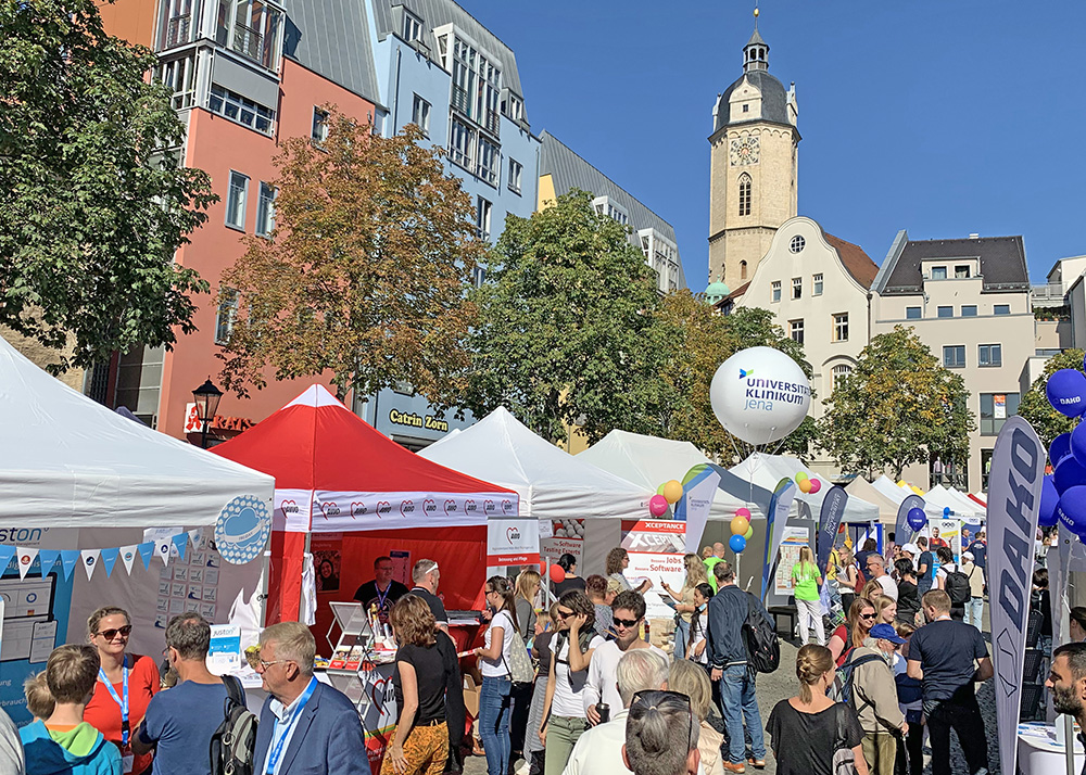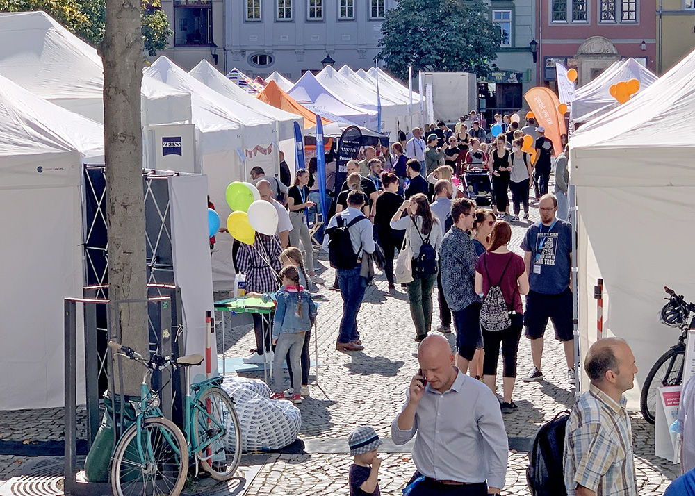Der Jobwalk am Samstag in Jena war auch in der zweiten Auflage wieder ein voller Erfolg. Tausende Besucher haben sich über offene Stellen und Ausbildungsmöglichkeiten informiert. Fotos: Ben Baumgarten/JN