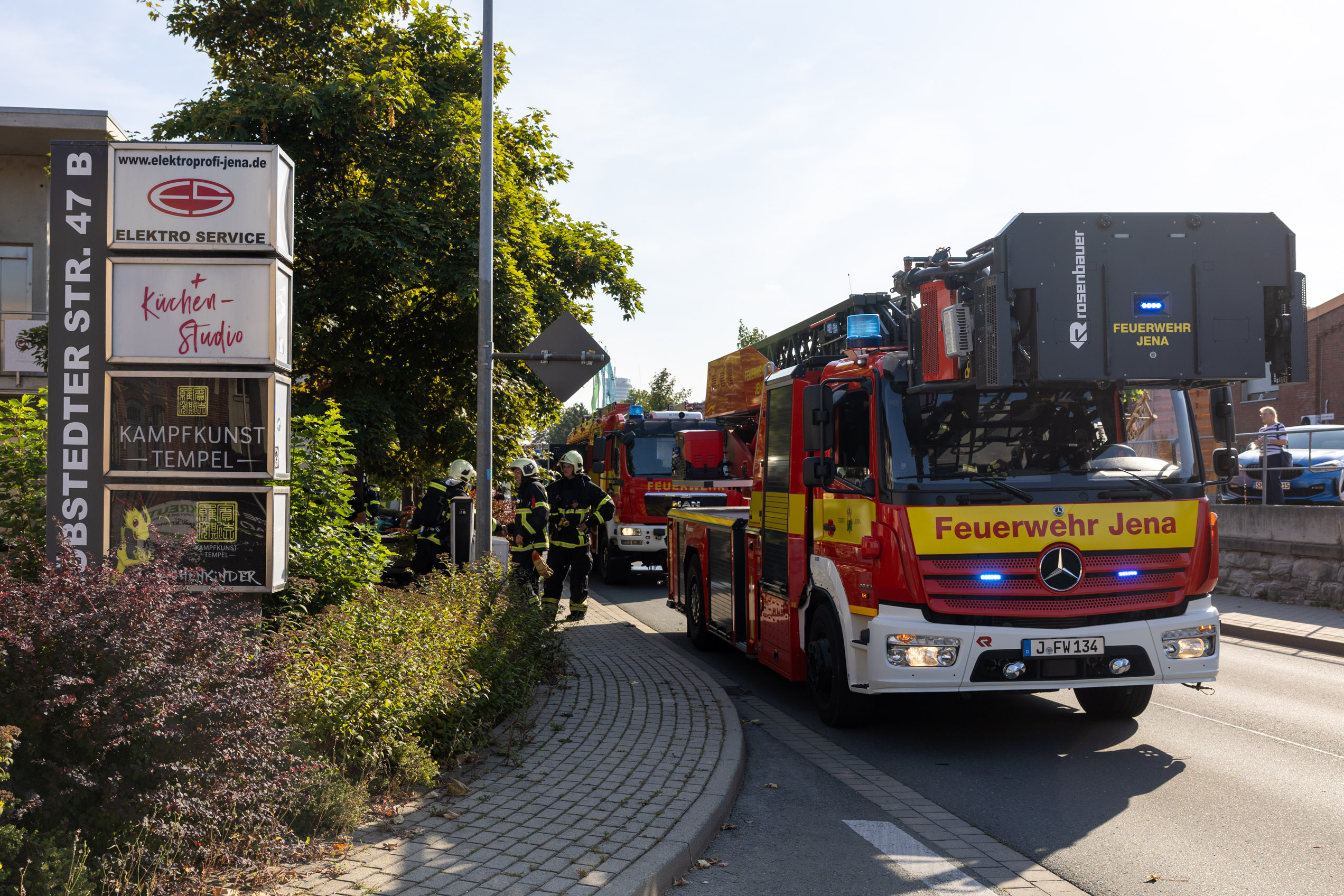 Dichter Rauch, brennende Batterien und eine Kampfkunstschule voller Kinder – am Mittwochnachmittag wurde die Feuerwehr zu einem gefährlichen Brand in der Löbstedter Straße in Jena gerufen.