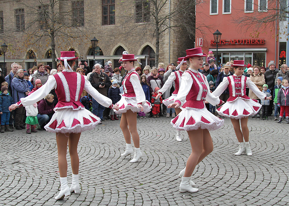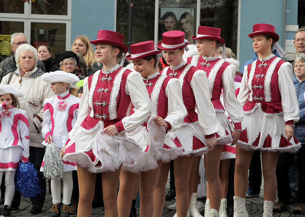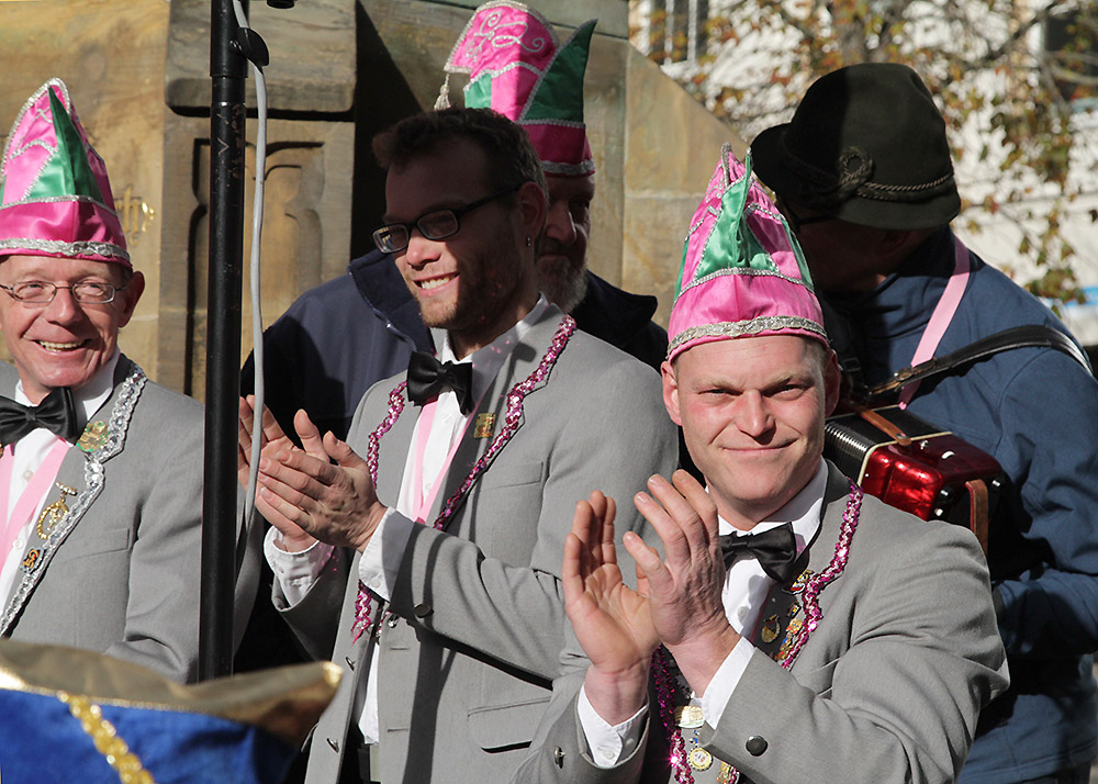 11.11. um 11.11 Uhr: Die Jecken sind los! Jena ist keine Faschingshochburg – aber die Narren lassen sich auch in der Saalestadt nicht vom Feiern abhalten. Am Samstag wurde auf dem Marktplatz mit viel Schunkeln und Musik die neue Karnevalssession begrüßt. © Fotos: Michael Baumgarten