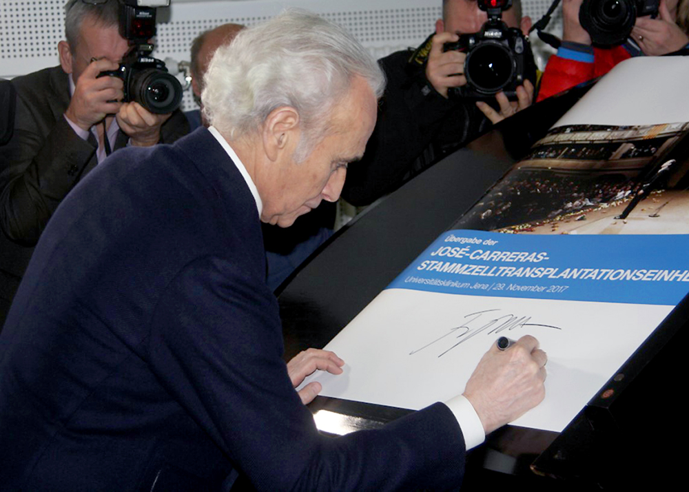 Der Opernsänger José Carreras übergab am Mittwochmittag eine Behandlungseinrichtung für Krebs-Patienten an das Universitätsklinikum in Jena. Die Carrera-Leukämie-Stiftung unterstützte den Bau der neuen Station für Stammzelltransplantationen mit einer Million Euro. Fotos: Michael Baumgarten/Andreas Wentzel