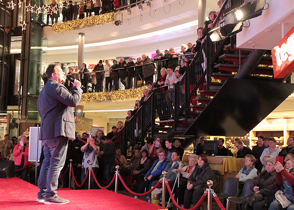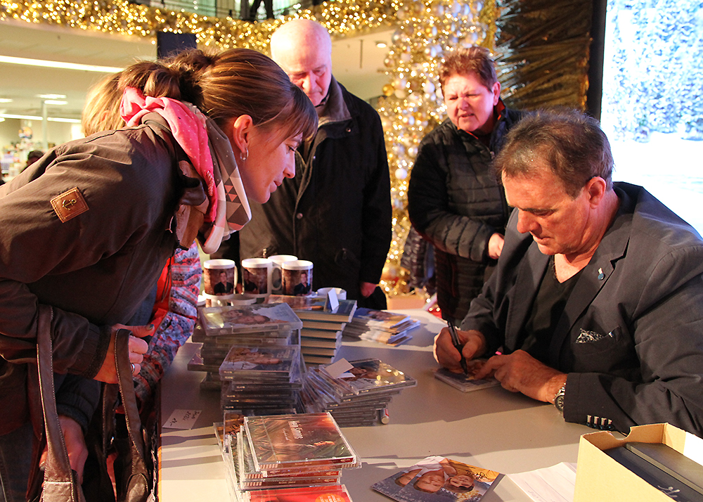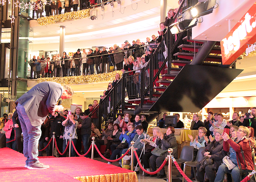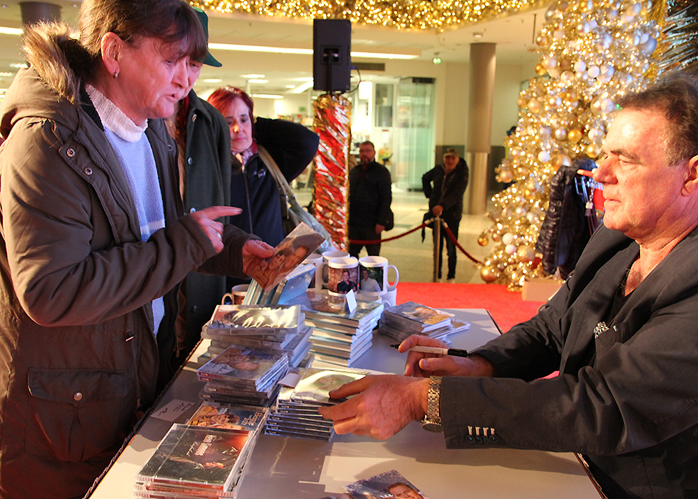 Auch 51 Jahre nach seinem Hit „Mama“ lieben ihn die Fans immer noch: Der holländische Kinderstar „Heintje“ alias Hein Simons begeisterte am Dienstagabend mit Hits wie „Oma so lieb“, „Heidschi Bumbeidschi“ und natürlich auch „Mama“ die Besucher in der Goethe Galerie. Nach seinem Auftritt schrieb er noch fleißig Autogramme. Fotos: Baumgarten