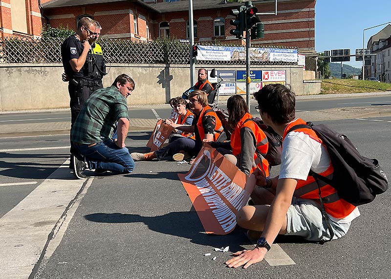 Klima-Kleber blockieren Kreuzung in Jena