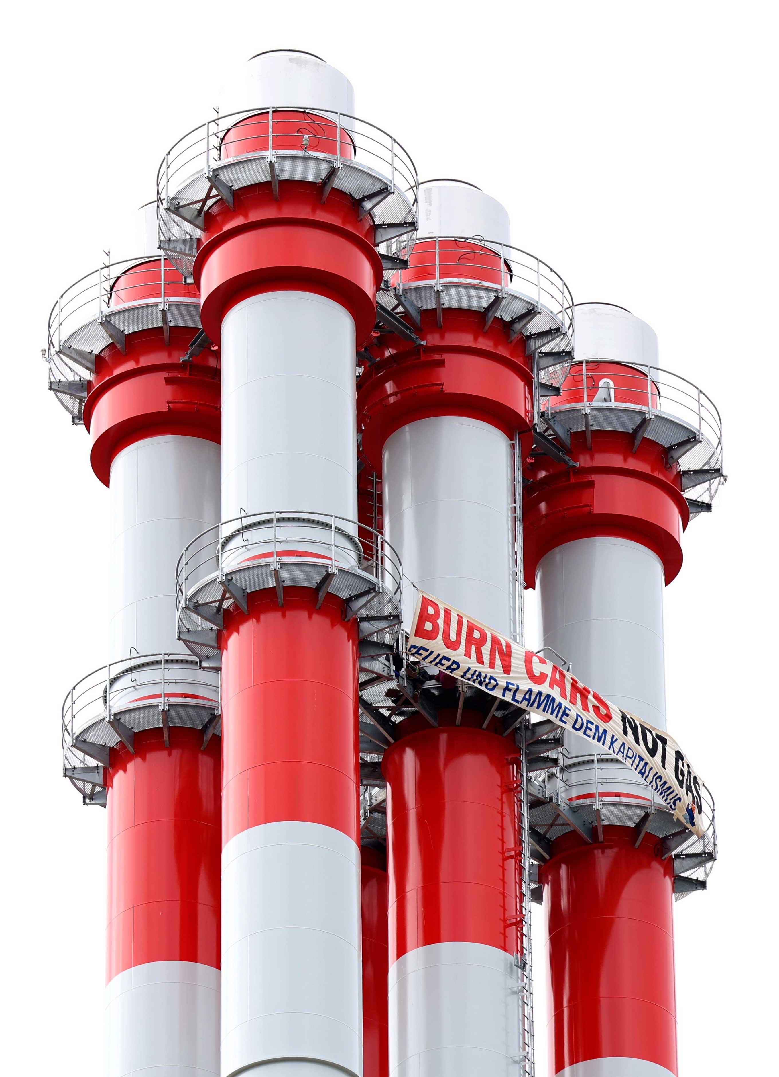 Klima-Aktivisten besetzen Kraftwerk-Schornsteine in Jena