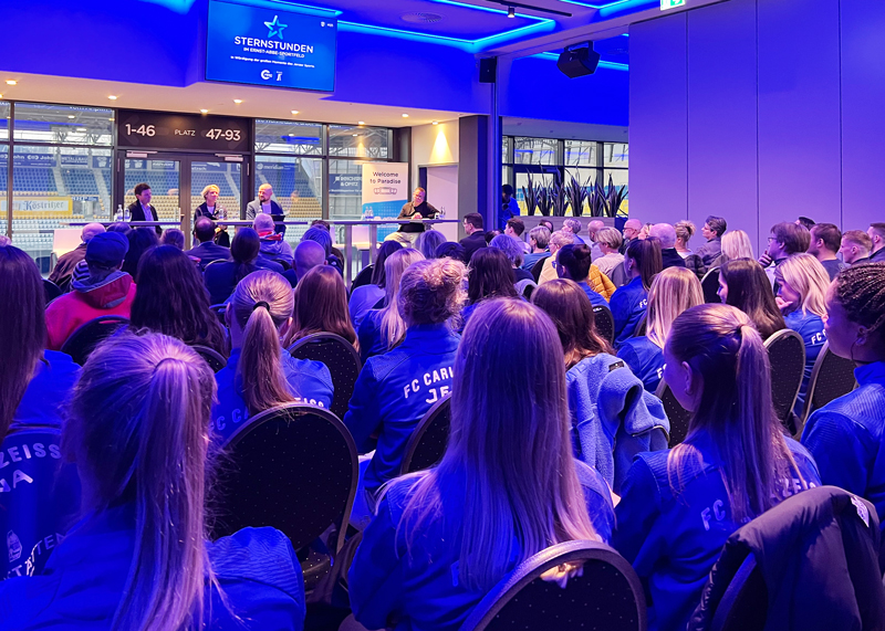Jena. „Sternstunden im EAS“: Martina Voss-Tecklenburg beim „Klassentreffen“ des Jenaer Frauenfußballs.