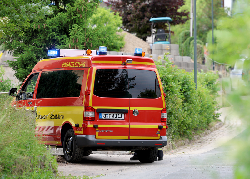 Jena. Feuerwehr-Einsatz in Jena: Bagger schlägt Leck in Gasleitung.