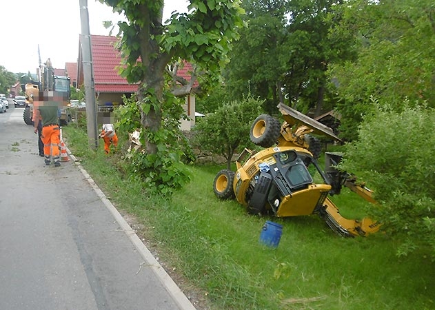 Jena. Ein Bagger ist am Donnerstagnachmittag in Jena-Ziegenhain von der Straße abgekommen und umgekippt.