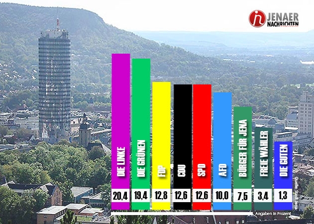 Jena. Jena hat gewählt: LINKE stärkste Kraft, enormer Zuwachs von den Grünen, FDP und der AfD. Desaster bei CDU und SPD.