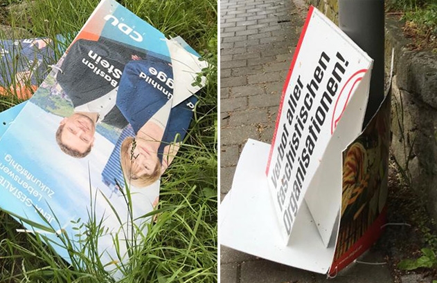 Jena. Etwa 70 Wahlplakate wurden von der Jenaer Innenstadt bis ins Westviertel beschädigt und heruntergerissen.