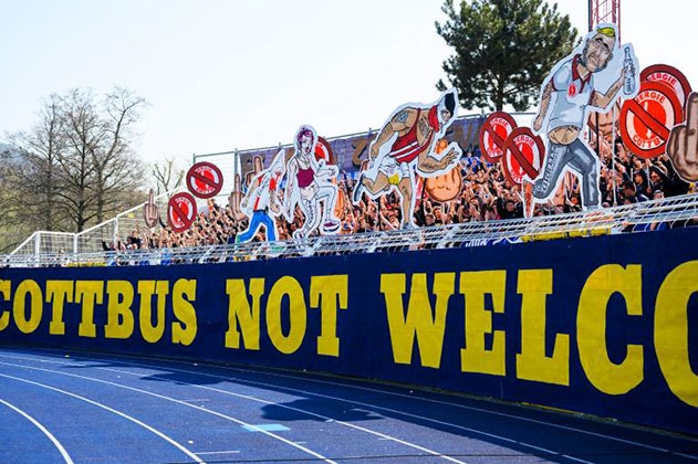 Jena. Nach dem Ostderby: Fans des FC Carl Zeiss Jena greifen Autos mit Cottbus-Fans an – Polizei geht mit Wasserwerfer dazwischen.