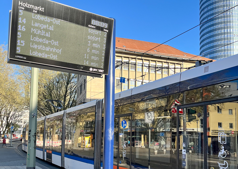 Jena. Zehn Haltestellen in Jena erhalten neue Anzeigesäulen. Austausch startet im Juni.