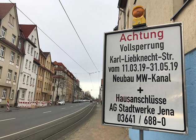 Jena. Die Karl-Liebknecht-Straße in Jena-Ost muss wegen Bauarbeiten für etwa 10 Wochen voll gesperrt werden.