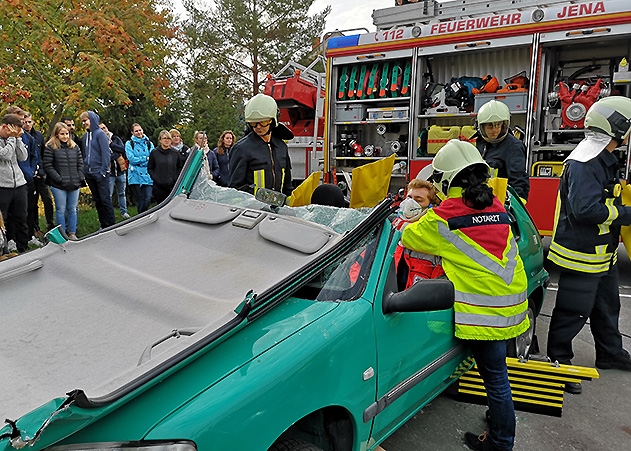 Jena. Lernen für den Ernstfall: Medizinstudenten erproben in Jena mit Feuerwehr und Rettungsdienst.