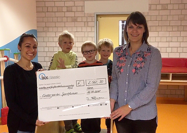 Jena. IKK fördert Gesundheitsprojekt: Der Kindergarten Sportforum in Jena bekam einen Scheck in Höhe von 2.563 Euro überreicht.