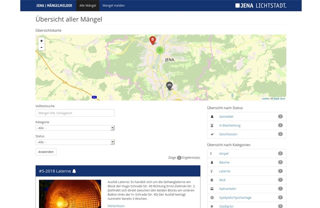 Jena. Der Jenaer Mängelmelder ist online: Ab sofort können Schäden, Mängel und Probleme aller Art an die Stadtverwaltung gemeldet werden.