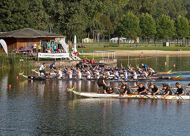 Jena. Der 12. GODYO Drachenboot-Sprint am Jenaer Strandschleicher wird am 8. September 2018 ausgetragen.