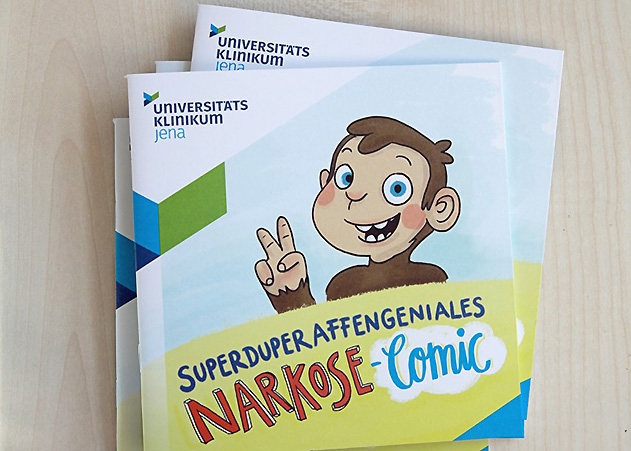 Jena. Äffchen Manchu nimmt Kinder an die Hand. Am Uniklinikum Jena wurde ein Comic zur Aufklärung vor Operationen entwickelt.