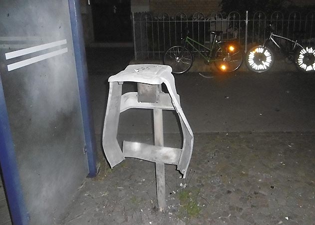 Jena. In Jena wurde am frühen Donnerstagmorgen an der Straßenbahn-Haltestelle Spittelplatz der Papierkorb gesprengt.