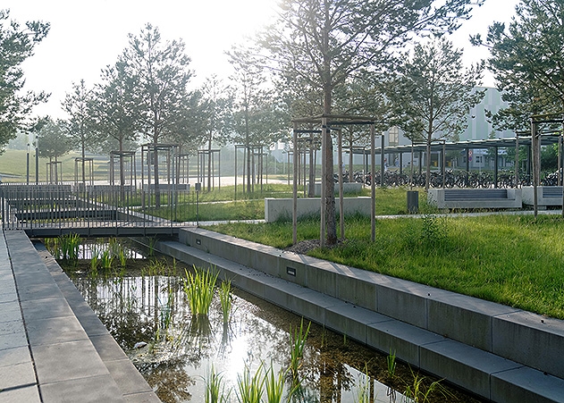 Jena. Ein Stück Natur vor dem Klinikum in Jena-Lobeda: Die Grünanlagen rund um den Neubau sind fertiggestellt.