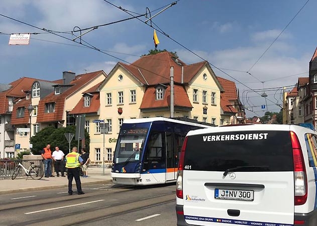 Jena. Eine junge Radfahrerin wurde schwer verletzt, als sie in Jena-Ost mit einer Straßenbahn zusammenstieß.