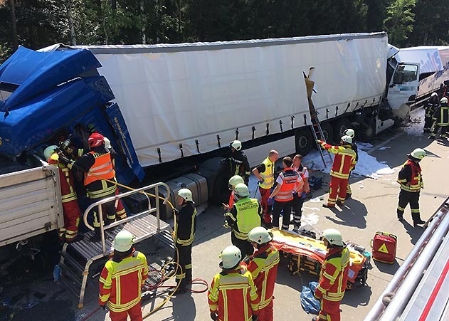Bad Klosterlausnitz. Erneut sorgte am Mittwoch ein schwerer Unfall mit drei Lkw auf der A9 für ein Todesopfer.