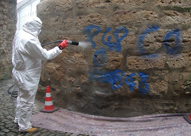 Jena. Erst der Pulverturm, nun folgt das Kriegerdenkmal in Lichtenhain: Der Kommunalservice Jena entfernt Graffiti.