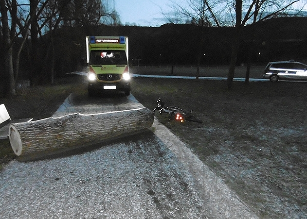 Jena. Radweg mit Baumstamm blockiert: Schwere Kopfverletzungen erlitt ein Radfahrer am Montagmorgen in Jena-Lobeda.