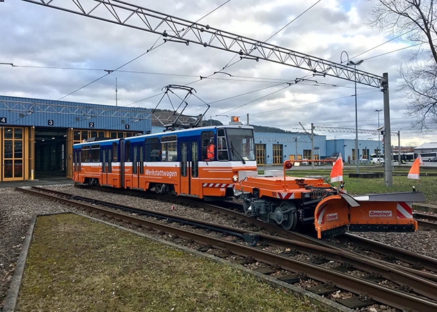 Jena. Schneepflug auf Schienen: Der Jenaer Nahverkehr kann seinen Werkstattwagen jetzt auch bei Schneefall einsetzen.