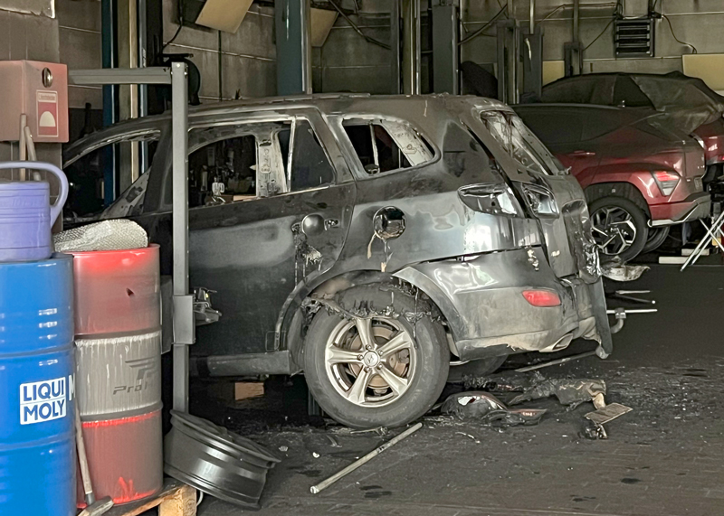 Jena. Nächtliches Feuer-Drama im Autohaus in Jena. Pkw geht in Flammen auf.